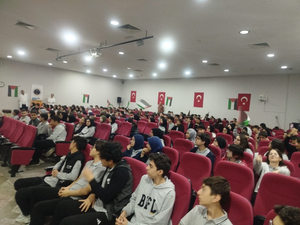 Mavi Marmara Gazisi ve İHH Temsilcisi Muhittin Gili, öğrencilerimize hitap etti. Duygusal anların yaşandığı programda öğrenciler de Gazze’de yaşanan insanlık dramına dikkat çeken konuşma ve şiirlerle Filistin halkına destek mesajı verdi.